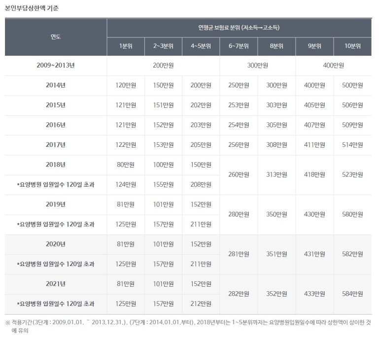 과도한 의료비로 인한 가계 부담을 덜어주기 위하여 가입자가 부담한 연간(1.1~12.31) 건강보험 본인일부 부담금 총액이