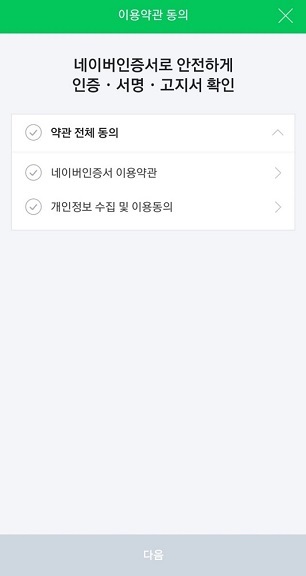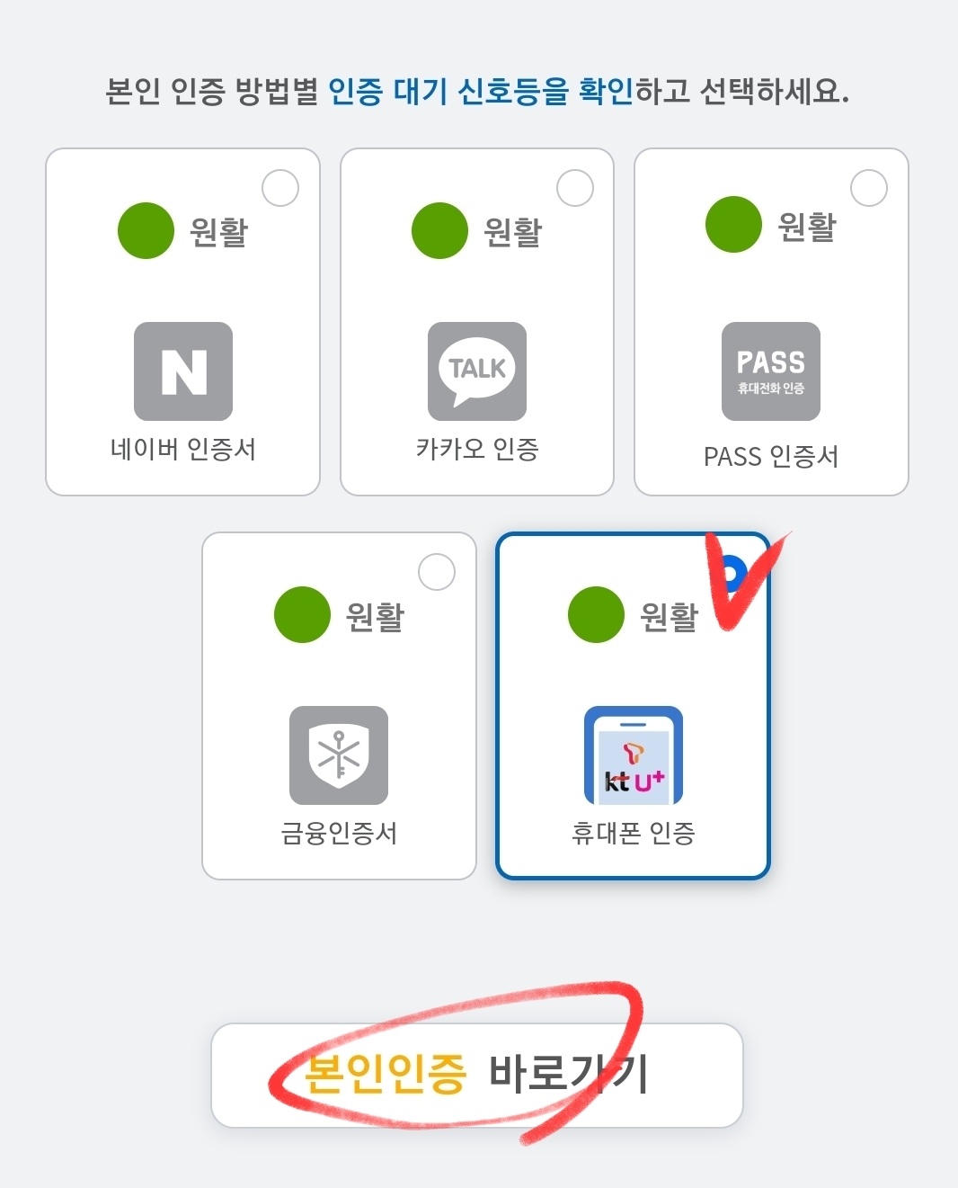 - 현재 선택 가능한 인증 앱 - 네이버, 카카오, 패스, 공동/금융, 휴대폰