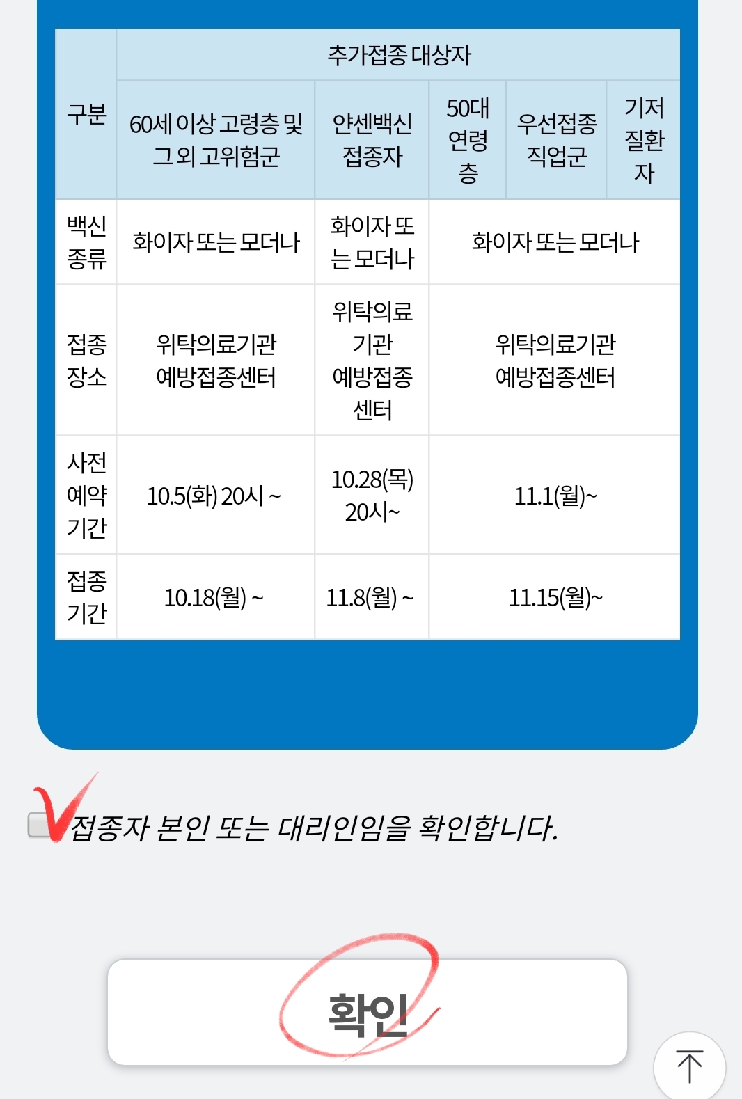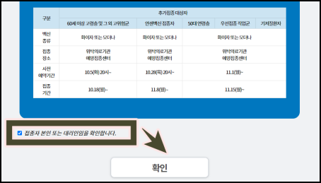 - 추가접종 대상자 확인 - 추가접종 대상자임을 재확인