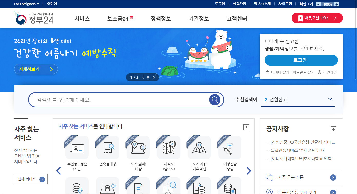 가장 먼저 해당 추가접종 예약을 위한 홈페이지에 접속해야 합니다. 해당 페이지는 앞서 1, 2차 때 예약했던 '코로나19 예방접종 사전예약 시스템' 홈페이지입니다. 예약 편의를 위해 아래 링크를 달아드리, 이 글을 읽으신 후 바로 접속하여 예약하시면 되겠습니다.