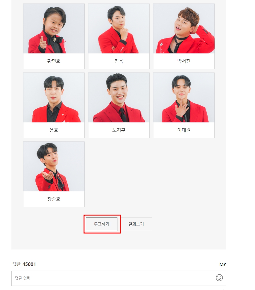 2) 투표 페이지 이동, 원하는 가수 7명에게 투표