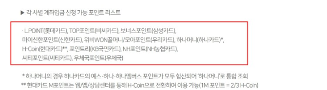 입금신청 가능한 카드 포인트?