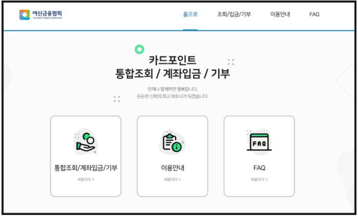 아래의 금융협회 카드 포인트 조회 홈페이지 클릭하시면 통합조회 및 포인트 계좌입금 현금화를 진행할 수 있습니다.